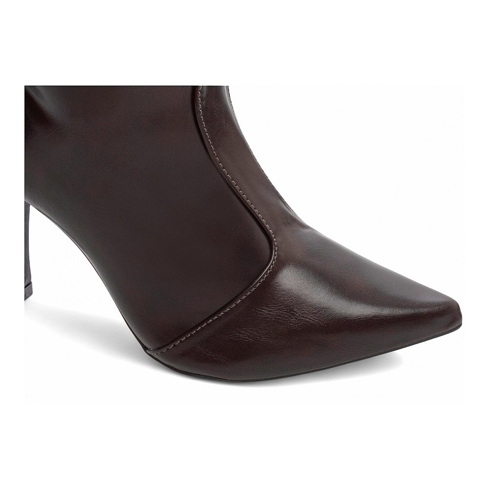Bota Feminina Bico Fino Marrom Café com Salto 9cm e Fivelas Douradas