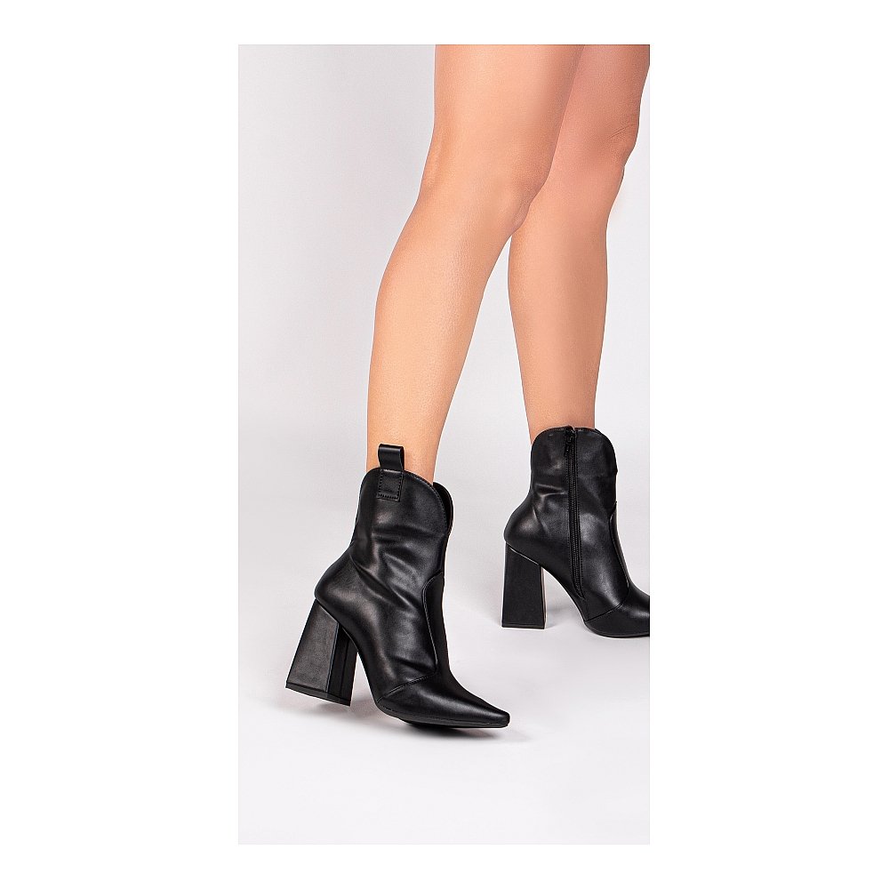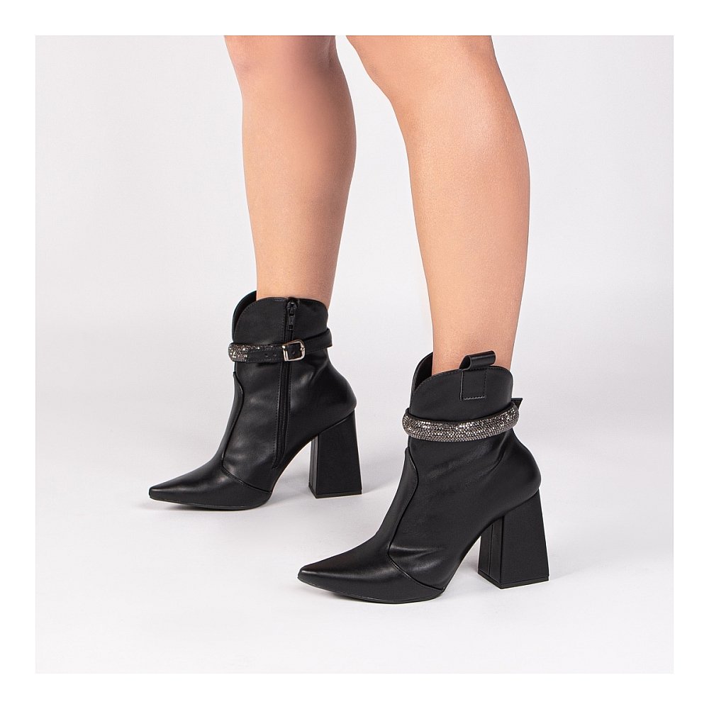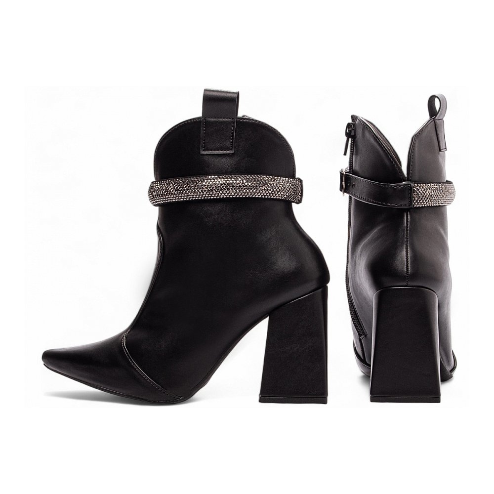 Confeccionada em napa preta, ela tem acabamento refinado e um visual atemporal, perfeito para quem busca versatilidade no dia a dia ou em ocasiões especiais. O bico fino alonga a silhueta e traz um toque moderno e feminino, enquanto o cano médio valoriza as pernas e garante um caimento impecável.
