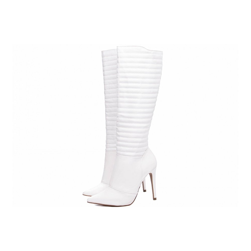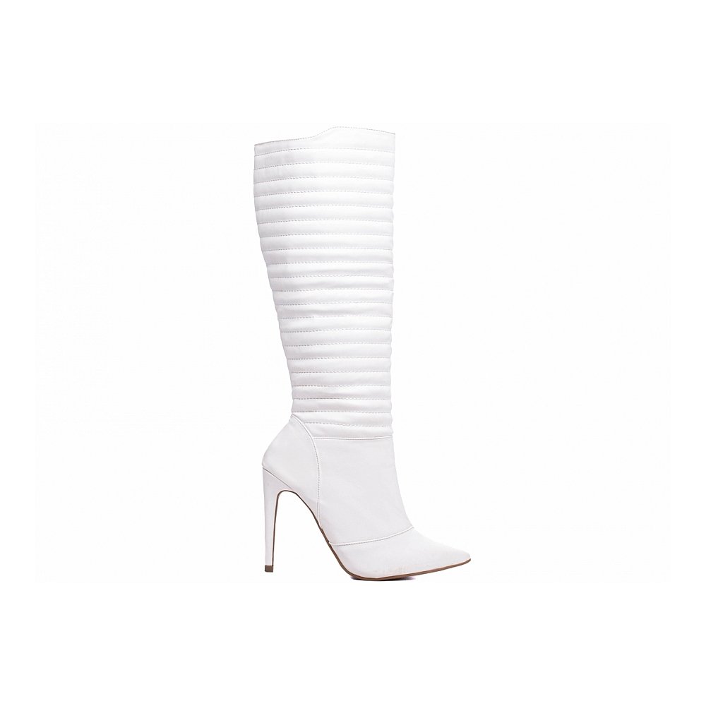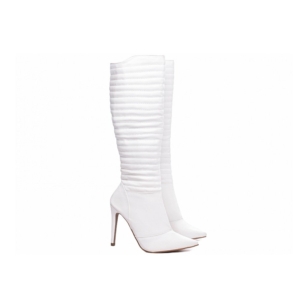 Bota Feminina Branca Salto Alto 12cm em Napa com Zíper e Matelassê