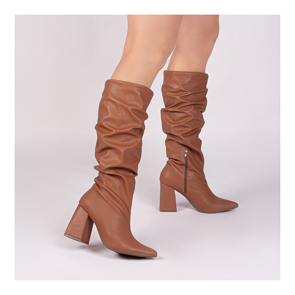 Sabe aquela bota que muda totalmente o visual e faz você se sentir mais confiante no mesmo instante? Essa é a Bota Feminina Caramelo de Bico Fino com Salto Alto 9cm. Um modelo feito para mulheres que gostam de presença, estilo e conforto no dia a dia.