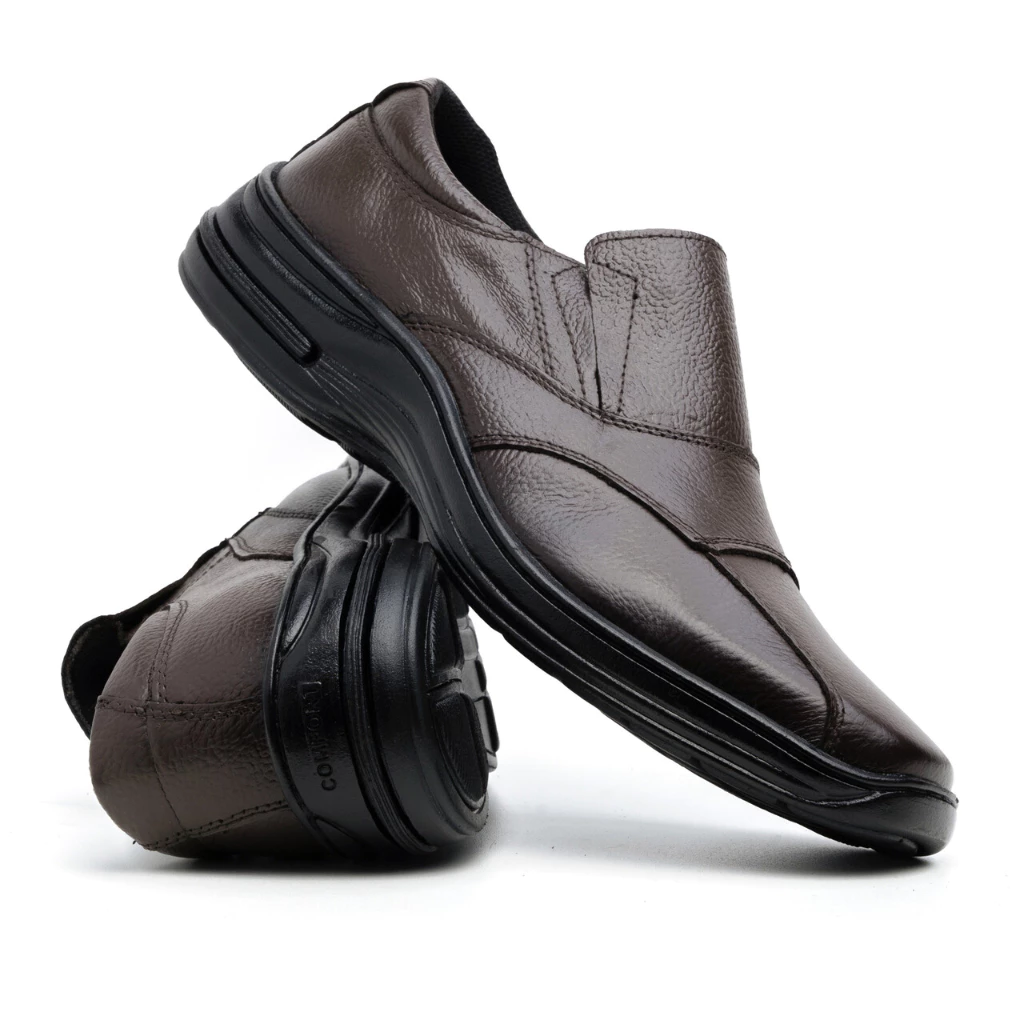 Sapato Masculino de Couro Legítimo de Boi Comfort Ortopédico leve Macio Elástico