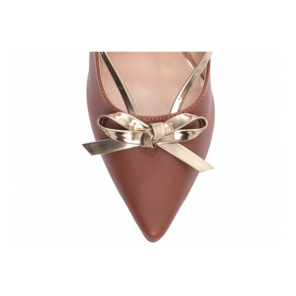 Scarpin Caramelo com Laço Dourado | Salto Fino Elegante e Confortável